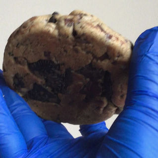 Thick browned butter chocolate chip Oreo cookies, topped with Oreo cookies.